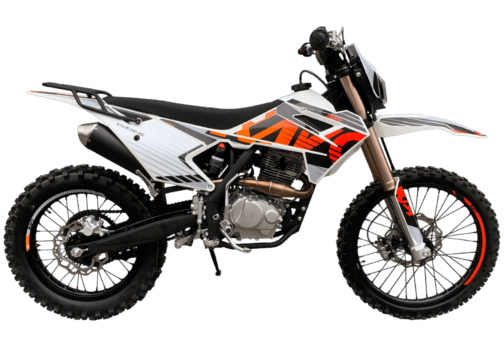 KAYO K3-LM 250 MX– выносливая и доступная база, созданная из проверенных временем компонентов. Подойдёт начинающим эндуристам для обучения и тренировочных прокатов.В основе – одноцилиндровый 4-тактный двигатель YX 166FMM CB250-C с 2 клапанами и воздушным охлаждением. Его рабочим объём составляет 223 см³. Запуск мотора осуществляется с помощью систем электро- или кикстартера. Стабильную работу на любых оборотах сохраняет карбюратор PE30. Коробка передач имеет 5 ступеней.Поглотить удары и вибрации рельефной поверхности готова нерегулируемая подвеска. Длина передней – 830 мм, длина заднего моноамортизатора с компенсационным бачком – 450 мм.Колёса диаметром 18 дюймов сзади и 21 дюйм спереди обуты в покрышки YUANGXING с глубоким протектором для лучшей проходимости и крепкого зацепа. Быструю остановку в критических ситуациях возьмут на себя двойные дисковые тормоза.Энергоэффективная передняя LED-фара даёт возможность преодолевать километры даже в вечернее время. Топливный бак на 10 л позволит проехать длительные расстояния без частых остановок. Встроенный счётчик моточасов поможет держать под контролем время обслуживания и продлить срок службы техники.KAYO K3-LM 250 MX – качественная техника без высоких затрат. Станет отличным стартом и продолжением вашей воли: будь то первые шаги или оттачивание мастерства на крутых склонах.Комплектация и внешний вид мотоцикла могут отличаться в зависимости от поставки. Изображение на сайте не гарантирует наличие тех или иных опций. Уточняйте информацию при оформлении заказа.