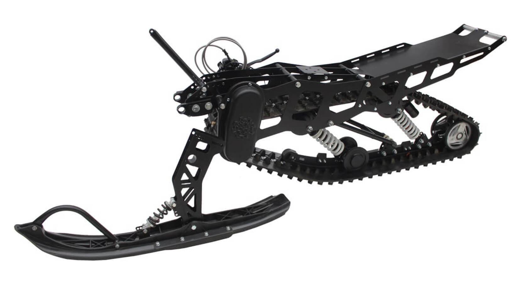 Alum.Данная комплектация собирается на базе Максимальной, но часть компонентов производится из алюминия. При этом часть высоконагруженных деталей остается из стали (рельс, рычаг, стойка лыжи, валы, рама). Это позволяет значительно снизить вес комплекта, а также, избавиться от потенциальной ржавчины.