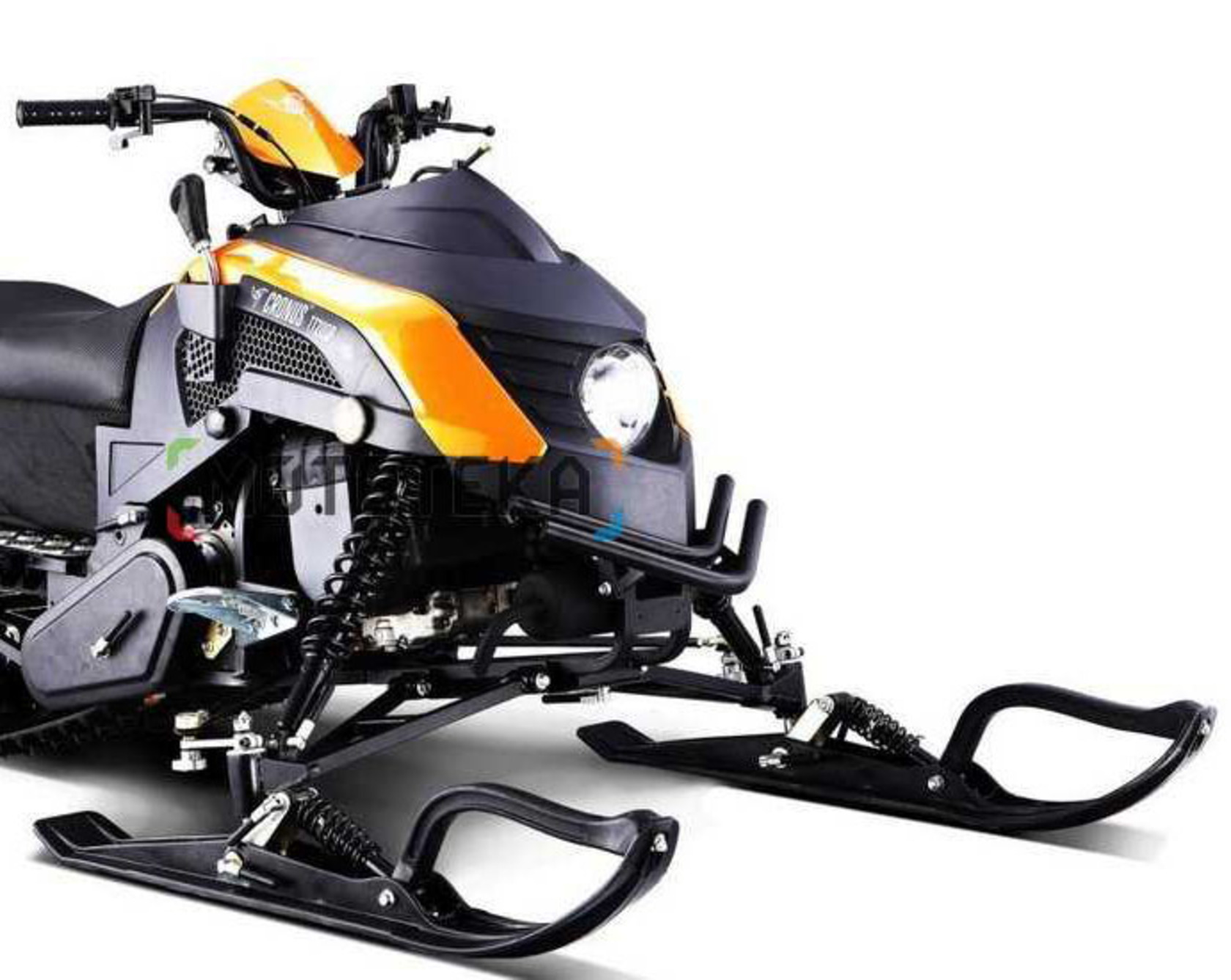 Гусеницы снегохода обладают хорошим сцеплением со снегом и обеспечивают безопасность райдеру. Особенно это важно, когда речь идет о подъемах по заснеженным тропам. На снегоходе установлены: передняя подвеска — независимая, рычажная;