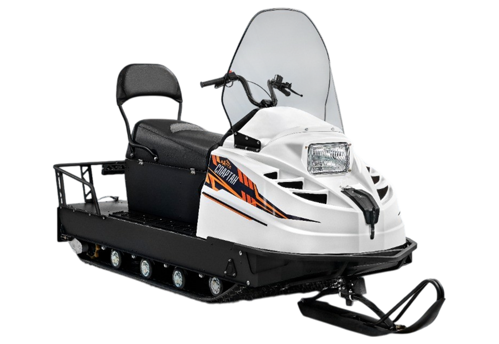 Снегоход TERRATRACK SPARTAN Классика L — это прагматическое и надёжное решение для тех, кто ценит прочность и простоту конструкции. Основанный на классической схеме с одной лыжей и двумя гусеницами, этот аппарат вобрал в себя лучшие черты легендарного «Бурана» и довёл их до совершенства с учётом современных требований.Надёжность, проверенная деталямиРама сварена лазером по собственным чертежам производителя — это гарантирует максимальную прочность, точность геометрии и уверенную нагрузочную способность.Доступна в нескольких длинах: S (2878 мм), М (3232 мм), L (3686 мм) и XL (4040 мм) — выбор формата под любые условия эксплуатацииКонструкция и подвескаПередняя часть опирается на одну металлическую лыжу, а за тягу отвечают две резинотканевые гусеницы, обеспечивающие стабильное сцепление и проходимость.Благодаря подламывающейся пятке (запатентованной конструкции), снегоход обходит препятствия с большей лёгкостью, улучшая маневренность в условиях лесистой или пересечённой местности.Задняя подвеска выполнена по схеме с неопрокидывающимися тележками, усиленными пружинами и крупными катками — это обеспечивает плавность хода и устойчивость даже при высокой скорости или перегрузе.Комплектация и удобствоОпционально предусмотрена дополнительная топливная ёмкость (23 л) с автоматическим перекачиванием — идеально для дальних маршрутов и охоты.Можно установить амортизатор лыжи для более мягкого хода, защиты от пробоев и снижения эффекта «дельфинирования» при движении по неровному снегу.Габариты, масса и характеристикиДлина — 3055 ± 30 мм; ширина — 910 ± 10 мм; высота по стеклу — 1480 ± 30 мм; в сложенном состоянии — 1020 ± 30 мм.Конструкционная масса (без АКБ) — 313 кг; снаряжённая — около 369 кг; полная масса — 569 кг; рассчитан на 2 человека.Скорость ограничена до 65 км/ч, что говорит о предназначенности модели для охоты, рыбалки и утилитарных задач, а не для спортивных заездов. Радиус поворота также рассчитан на базовую манёвренность — не более 6000 мм.Двигатель и трансмиссияОснащён двухцилиндровым четырёхтактным двигателем объёмом 764 см³, с карбюраторной подачей топлива. Управление запуском — электрический и ручной стартер, предусмотрен аварийный вариант.Максимальная мощность — около 19 кВт (~26 л.с.); крутящий момент — 51 Н·м при 2600 об/мин.Трансмиссия — надёжная конструкция собственной разработки (кулачковое переключение), с усиленной цепью (шаг 12,7 мм) и гибкими передаточными числами (2.0, 2.4, 2.67) для разных условий.Питание и расходТопливный бак разделён на две части — 30 л + 24 л, что повышает запас хода и гибкость эксплуатации.Топливная система включает вакуумный насос, работающий с бензином минимального октанового числа АИ-92.SPARTAN Классика L — это надёжный, рабочий снегоход утилитарного направления, сочетающий простую и мощную конструкцию с возможностью модификации под задачи охоты и рыбалки. Он не для рекордов, но для суровых условий — самое то.