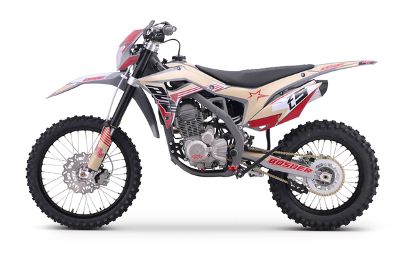 За основу мы взяли успешный полноразмерный Z5 и упростили комплектацию, чтобы сделать максимально привлекательный прайс, оставив главные компоненты — надежный 250-кубовый мотор Zonsen и усиленную стальную раму Bosuer. В итоге получили полноразмерный, функциональный и мощный эндуро мотоцикл. Идеально сбалансированный, устойчивый и готовый прощать ошибки при езде.Сердце Z5L – мощный, эластичный и надежный 250 кубовый Zonsen ZS172FMM-3A (CB250-F), 21 лс, воздушное охлаждение. Система подачи топлива – проверенный карбюратор NIBBI PWK34.Z5L уже в заводской комплектации готов к покорению серьезного бездорожья: нерегулируемая энергоемкая подвеска с большими ходами, вилка “перевертыш” и наличие рычагов задней прогрессии. Установлена “злая” внедорожная резина Carrystone. Мощная гидравлическая тормозная система HSК Racing остановит байк в любых условиях. На мотоцикле установлены: усиленные черные колёсные диски MOJO, CNC подножки c увеличенным зацепом, датчик моточасов, защита рук, грипсы и ручка газа Nibbi Racing. В фару установлена диодная лампа.Среднеразмерный Z5L подойдёт для райдеров начального и среднего уровня, которые не готовы переплачивать за более богатую комплектацию. Крепкий, надёжный и неприхотливый BSE Z5L обладает всеми качествами настоящего эндуро байка при доступной цене.