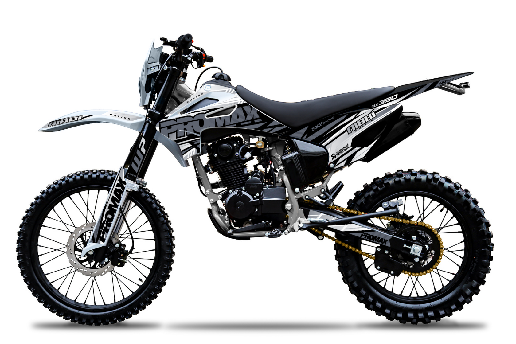 Тайваньский бренд, покоривший европейские страны, неустанно завоевывает рынок России, доказывая, что качество не означает высокий ценник! Для подтверждения своих слов – бренд дает гарантию 3 года на свою технику.Все мотоциклы PROMAX имеют Европейский сертификат качества. Применяются влагозащищенные разъемы проводки. Все подшипники обработаны специальной консистентной смазкой. «Quality in detail» (“Качество в мелочах”) - слоган компании PROMAX.ДвигательНовая модель PROMAX MX350 2024 модельного года для тех кто хочет больше! Больше скорости! Больше мощи! Больше адреналина! Встречайте PROMAX MX350 – покорителя бездорожья ! PROMAX MX280 - это выбор как продвинутых новичков, так и опытных райдеров. Мощный и надежный двигатель ZS 175FMM с воздушным охлаждением и 5-ступенчатой трансмиссией в паре со спортивным карбюратором Nibbi PZ30 и выхлопом Akrapovic Exhaust System гарантируют приятный выхлоп, стабильную работу и мощность 27 л.с. Рычаг сцепления имеет флажок для легкого выжима сцепления и правильного положения троса для максимального комфорта и полного контроля работы двигателя.Рама изготовлена с упором на надежность и долгий срок службы. Все узлы тщательно проварены, есть дополнительные усиления. На раму установлен пластиковый каркас, который защищает мотоботы и раму. Алюминиевый маятник KTM для сбалансированного веса и большей прочности.Спортивные колеса 21/18Алюминиевые обода от бренда Unison, сделанные из сплава 6065, соединены с фрезерованной ступицей 4мм спицами! Покрышки Kenda, благодаря мягкому составу, отлично держат сцепление с покрытием летом, а зимой выдерживают вкручивание шипов!Тормоза ANJIE.Двухпоршневой суппорт спереди и однопоршневой сзади от производителя тормозных систем ANJIE, в сочетании с колодками, изготовленными из керамического материала, обеспечивают высокий коэффициент трения и эффективность торможения даже при высоких температурах дисков. Сами же диски толщиной 4мм – гарантия безопасности и плавной остановки.Сиденье PROMAXФирменное нескользящее сиденье PROMAX, выполненное по технологии anti-slip grip, держит любого райдера как суперклей: специальное ребристое водонепроницаемое покрытие позволяет чувствовать себя комфортно в любых погодных условиях.Электронная приборная панельМногофункциональная приборная панель со спидометром, тахометром, одометром, индикатором передач и заряда батареи. Влагозащитные разъемы подключения приборной панели, блоков управления и кнопок старт/стоп.Полностью диодная оптикаКороткоходная ручка газаРучка газа с коротким ходом от Nibbi Racing – пожалуй лучшее решение на подъемах и труднопроходимых участках. Нет нужды перехватывать ручку для получения большей мощности, достаточно подобрать необходимое усилие кисти и получить результат, оптимальный для стиля езды райдера!Приводная цепь ChohoЦепь Choho отличается от других большим запасом прочности, благодаря уплотнительному кольцу удерживающему смазку внутри и не пускающему пыль снаружи, предотвращая растяжение и низким уровнем шума – идеальное сочетание для тех, кто хочет как можно реже обслуживать технику и как можно больше эмоций получить!ПодвескаПодвеска WP, с диаметром пера в 41 мм, в заводской форме обладает широчайшими возможностями настройки, которых не представит ни один конкурент! При помощи внешних регуляторов и легко настраиваются прямо на трассе. Диапазон их настроек т