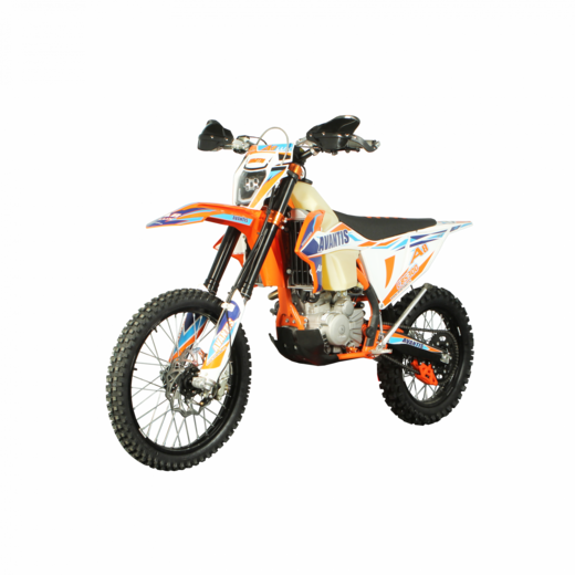 Новый Avantis A8 с двигателем ZS 174 MN-3 создан для райдеров, имеющим за плечами несколько сезонов на бездорожье и находящихся в поиске мотоцикла, который позволит вывести навыки на новый уровень.Модель разработана с оглядкой на серию Avantis Enduro: от нее мотоциклы Авантис получили сбитую внедорожную компоновку, информативные тормоза, прочный маятник и отличную управляемость. При этом новинка более лояльна к райдеру и прощает многие ошибки, позволяя уверенно осваивать сложные техники — и готовиться к переходу в спортивный дивизион.Отличительной особенностью Avantis A8 является малая сухая масса: мотоцикл весит всего 125 кг. Поэтому, несмотря на внушительные габариты, он не требует особых усилий для маневрирования на бездорожье и отлично рулится. Однако важно помнить, что этот мотоцикл, несмотря на всю свою дружелюбность, является полноразмерной взрослой моделью. Высота по седлу составляет 960 мм, поэтому мотоцикл будет комфортен для людей с ростом от 175 см и выше.Мотоцикл оборудован всем необходимым для того, чтобы сразу покорять бездорожье. На Авантис А8 установлена внедорожная резина Yuanxing, которая отличается редкой шашкой и хорошо держит зацеп практически на всех типах грунта. Для надежности фиксации колеса с завода укомплектованы буксаторами. В качестве базы для колес выбраны легкие и прочные обода бренда UNISON, которые не боятся прыжков и смелых маневров.Подвеска здесь также стоит соответствующая: зарекомендовавшая себя на прочих моделях регулируемая ККЕ, уверенно отрабатывающая неровности рельефа. Маятник перекочевал прямиком из спортивной серии Avantis Enduro — благодаря полой литой конструкции, он обладает внушительным запасом прочности. Помимо алюминиевой защиты рычагов, пластиковой защиты картера и герметичной защиты всех разъемов, данная комплектация также включает алюминиевую защиту радиаторов толщиной 5 мм.