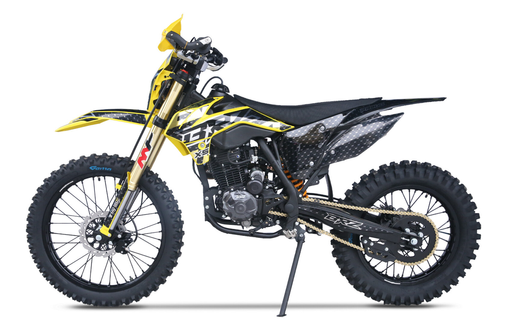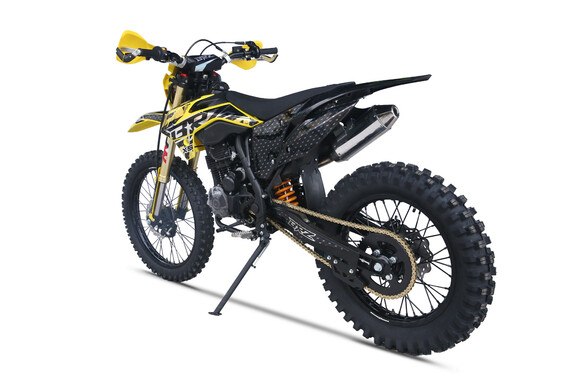 Мотоцикл BRZ X5 PR300 23 - живая легенда, хит продаж. Это среднеразмерный мотоцикл с мотором Zongshen ZS172FMM-5 с баланс. валом и кубатурой 300 см3. Двигатель работает в паре с карбюратором NIBBI Racing Black PE30, который отлично раскрывает его потенциал.BRZ X5 PR300 23 получил регулируемую вилку MNT, зеркало 41 мм. Задний амортизатор также имеет необходимые регулировки.С завода BRZ X5 PR300 23 оснащен отличной резиной Gema, спереди F-Enduro 90/90 - 21, сзади "жирнющая" мягкая XPlorer 754 01 120/80-18. Мощный зацеп уже с коробки!Для комфорта и удобства райдера предусмотрены все необходимые опции - отличная защита рычагов, рычаги "неломайки", приборная панель.Если вы давно искали надежный, легкий, хорошо укомплектованный эндуро с мощным мотором, то мотоцикл BRZ X5 PR300 23 это отличный выбор, особенно для новичка.