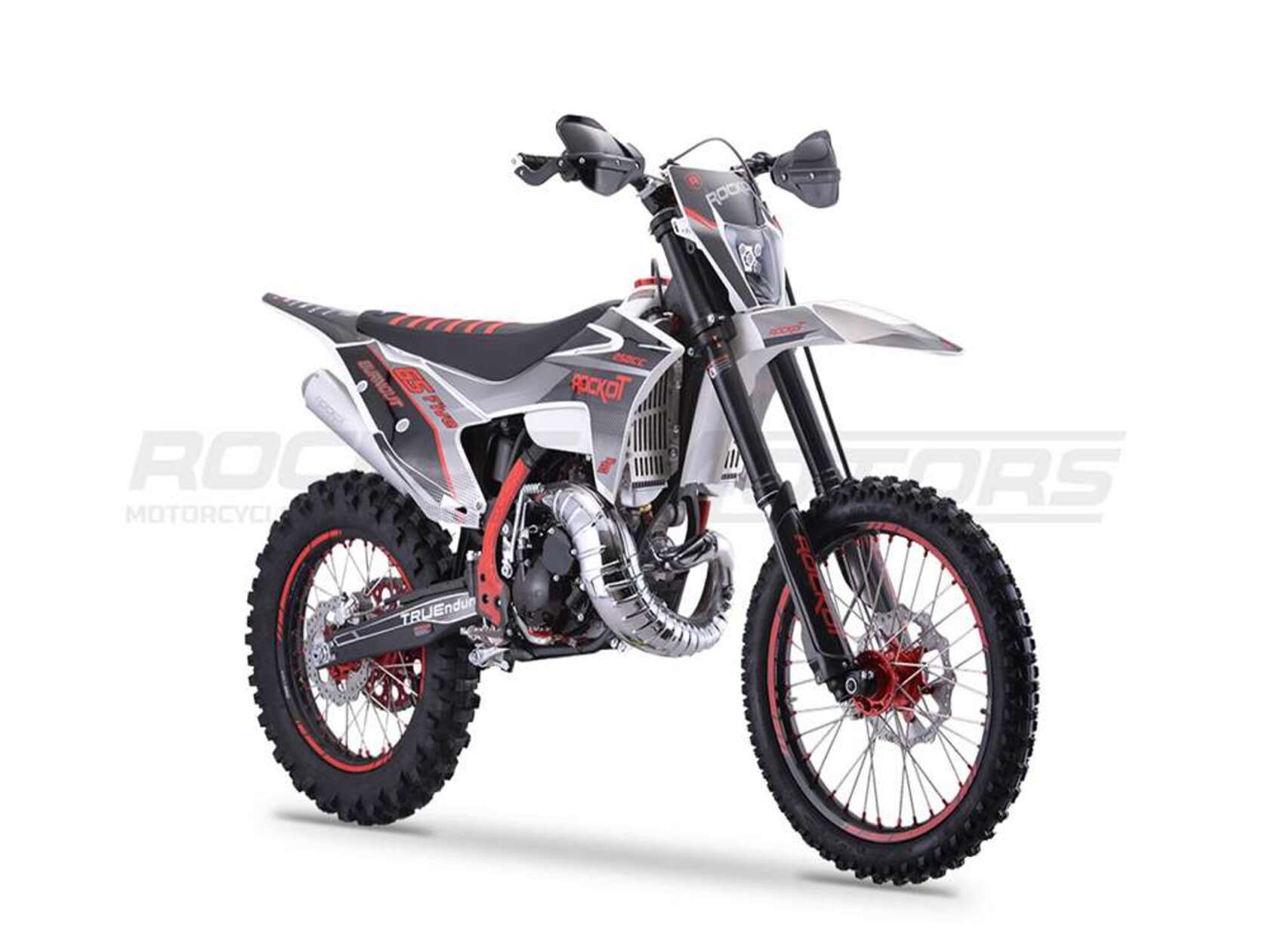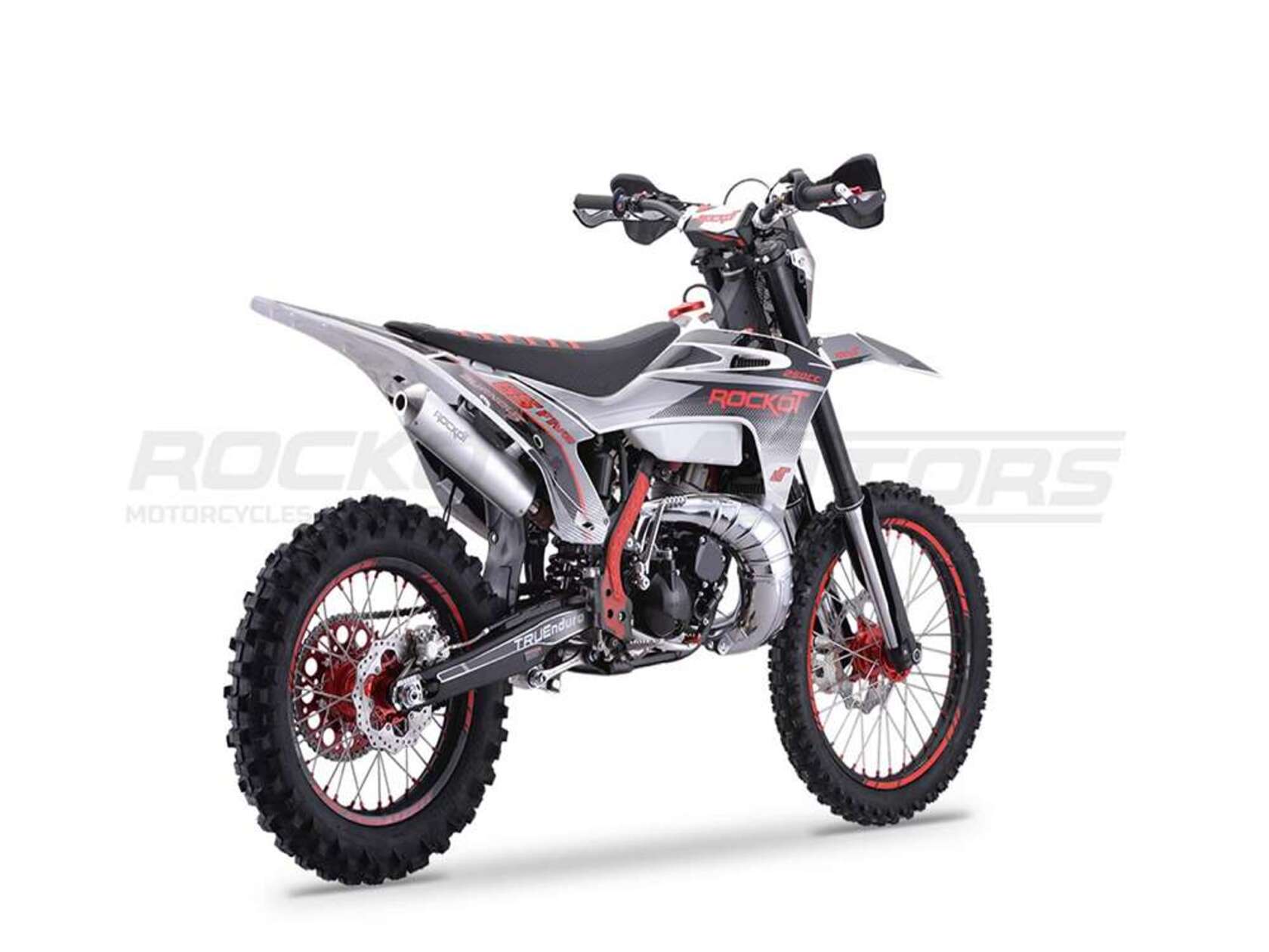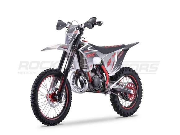 ROCKOT GS FIVE - новая ветвь развития в линейке эндуро мотоциклов ROCKOT. Мощный двухтактный двигатель, легкая и прочная рама, картриджная регулируемая подвеска - лишь часть достоинств данного мотоцикла. ROCKOT GS FIVE был создан на основе нашего многолетнего опыта в проектировании мотоциклов и быстрорастущем стремлении начинающих мотоспортсменов побеждать.Как уже принято, в лучших традициях линейки GS Series - мотоцикл выполнен в пластике “GASGAS”.ROCKOT GS FIVE получил обновленную фару типа KTM с пятью светодиодными линзами и габаритными огнями новой формы.GS FIVE привлекает внимание сочетанием максимального контраста цветов черного, красного и серого титана.Облицовка из белого пластика, выглядит единым целым вместе с топливным баком того-же белого цвета.Двигатель, рама, подвеска и колесные диски, окрашены в глубокий черный цвет, на фоне которого так эффектно выделяются тюнинговые элементы и графика яркого красного цвета.Делает дизайн завершенным и указывает на принадлежность мотоцикла к серьезным эндуро испытаниям - большое количество тюнинговых и защитных деталей.Полностью гидравлическая тормозная система с армированной гидролинией. Спереди установлен двухпоршневый суппорт, сзади - однопоршневый. ROCKOT GS FIVE имеет тормозные диски увеличенного диаметра: 270 и 240 мм..