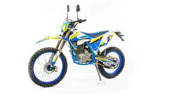 Мотоцикл кроссовый ROCKOT GS ONE Blackout-300. В стальную, усиленную раму заключен 300 кубовый двигатель Zongshen 4Т 177ММ с водяным охлаждением и балансирным валом гасящим вибрации. Мотоцикл выгодно выделяется интересной и сбалансированной комплектацией, качественной сборкой, неповторимым и интересным дизайном в стилеGASGAS"21. Подвеска полностью регулируемая.Спередителескопическая вилка KKE перевернутого типа 48/53/60-940 однокартриджная регулируемая, с настройкой отбоя и сжатия.Задняя подвеска:моноамортизатор KKE 470 мм регулируемый, с настройкой сжатия и отбоя. Прогрессия с рычажной системойУстановлена светодиодная фара и полнофункциональная LED приборная панель.