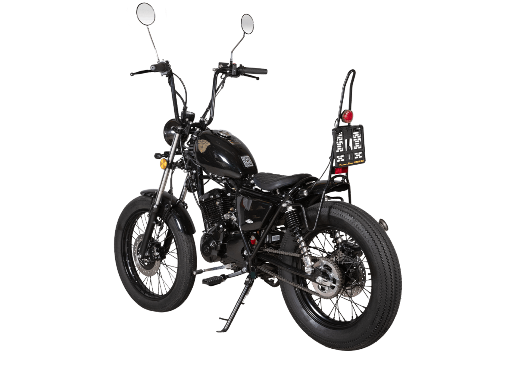 Мотоцикл GROZA Chopper 150 – стильный и лёгкий круизёр с классическим силуэтом и предсказуемым поведением на дороге. Подойдёт как для начинающих райдеров, так и ддя тех, кто ищет компактный байк для ежедневных городских поездок или неспешных прогулок по трассе.В основе лежит одноцилиндровый 4-тактный двигатель объёмом 150 см³, выдающий 12,5 л.с. Благодаря инжекторной системе подачи топлива и воздушному охлаждению мотор демонстрирует стабильную работу, простоту обслуживания и надёжность в эксплуатации. Механическая коробка передач оснащена 5 ступенями.На мотоцикле используются спицованные колёса. Спереди установлено колесо диаметром 19 дюймов на телескопической вилке. Сзади диаметр колеса 17 дюймов, а в роли подвески выступают 2 пружинно-гидравлических амортизатора. Для торможения установлены дисковые гидравлические тормоза с ABS на обоих колёсах.Топливный бак вмещает 6,8 литра топлива. Габариты мотоцикла 1965×705×1295 мм, вес 115 кг. Колёсная база 1300 мм.Комплектация и внешний вид мотоцикла могут отличаться в зависимости от поставки. Изображение на сайте не гарантирует наличие тех или иных опций. Уточняйте информацию при оформлении заказа.