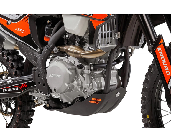 K2R 450 EFС оснащается 4-тактным одноцилиндровым двигателем жидкостного охлаждения Zongshen ZS 194MQ - одним из самых мощных моторов в линейке Zongshen.В базовое оснащение модели K2R 450 EFС входит все необходимое для спортивной езды: защита рук, защита картера двигателя, защита прогрессии задней подвески, неломающиеся ручки тормоза и сцепления, power bomb на выпуске,датчик моточасов и светодиодная фара головного освещения.Высота мотоцикла по седлу составляет 960 мм.