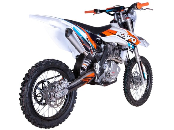 KAYO K1-L 150 MX 19/16 – лёгкий мотоцикл, представляющий собой оптимальный баланс производительности и технической оснащённости – нечто среднее между кроссовым мотоциклом и питбайком. Удобный, простой и надёжный мотоцикл, имеющий минимальную стоимость в своём сегменте.Мотоцикл оснащён одноцилиндровым 4-тактным двигателем воздушного охлаждения ZONGSHEN ZS161FMJ объёмом 150 см3, который выдаёт 12 л.с., что позволяет развивать большую скорость и с лёгкостью преодолевать трассы со сложным рельефом. Карбюраторная система подачи топлива с карбюратором PE28 обеспечивает бесперебойную работу техники в самых жёстких условиях эксплуатации, простоту и лёгкость в обслуживании, а также неприхотливость к качеству топлива. Аппарат оснащён 5-ступенчатой механической коробкой передач с классической схемой “1-N-2-3-4-5”.Компания KAYO самостоятельно разработала раму и пластик на данном мотоцикле.Передняя подвеска – телескопическая нерегулируемая вилка перевёрнутого типа длиной 800 мм, задняя — нерегулируемый моноамортизатор длиной 360 мм. Мотоцикл оснащён классическими спицованными колёсами диаметром 16 и 19 дюймов с прочными стальными ободами. Эффективное и безопасное замедление с любых скоростей обеспечивают гидравлические дисковые тормоза.Мотоцикл достаточно компактен и имеет вес всего 99 кг, поэтому он комфортен в эксплуатации одновременно и для мужчин среднего телосложения, и для девушек. Объём топливного бака составляет 6,7 л. Аппарат оснащён системой запуска двигателя при помощи кнопки электростартера или при помощи рычага кик-стартера.Высококачественная износостойкая резина с развитым протектором отлично держит дорогу на различных типах покрытия и в самых разных поворотах. Сиденье эргономичной формы покрыто антискользящим материалом. Яркая линзованная светодиодная фара позволяет кататься в тёмное время суток.KAYO K1-L 150 MX сочетает в себе отличные технические характеристики, комфорт и надёжность, что позволяет вам ощутить настоящую свободу на любой трассе.