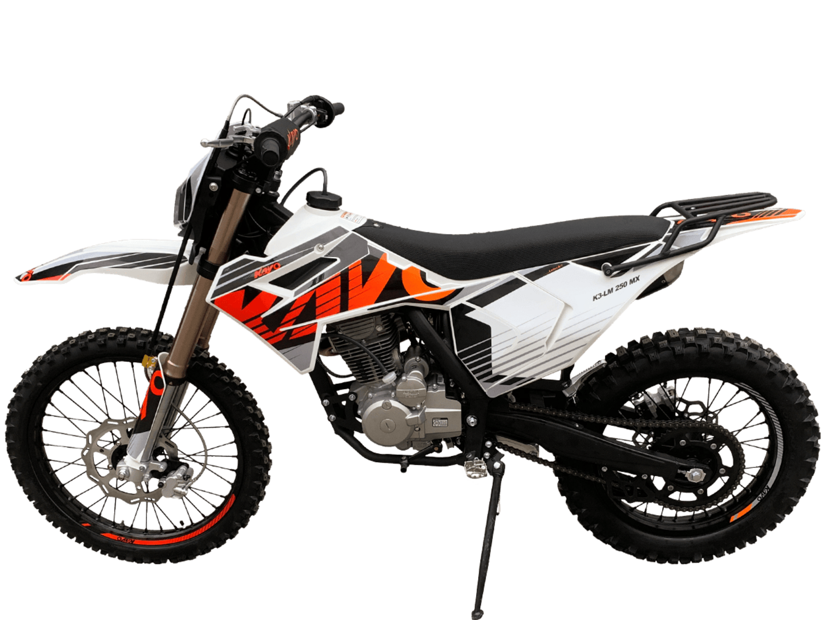 KAYO K3-LM 250 MX– выносливая и доступная база, созданная из проверенных временем компонентов. Подойдёт начинающим эндуристам для обучения и тренировочных прокатов.В основе – одноцилиндровый 4-тактный двигатель YX 166FMM CB250-C с 2 клапанами и воздушным охлаждением. Его рабочим объём составляет 223 см³. Запуск мотора осуществляется с помощью систем электро- или кикстартера. Стабильную работу на любых оборотах сохраняет карбюратор PE30. Коробка передач имеет 5 ступеней.Поглотить удары и вибрации рельефной поверхности готова нерегулируемая подвеска. Длина передней – 830 мм, длина заднего моноамортизатора с компенсационным бачком – 450 мм.Колёса диаметром 18 дюймов сзади и 21 дюйм спереди обуты в покрышки YUANGXING с глубоким протектором для лучшей проходимости и крепкого зацепа. Быструю остановку в критических ситуациях возьмут на себя двойные дисковые тормоза.Энергоэффективная передняя LED-фара даёт возможность преодолевать километры даже в вечернее время. Топливный бак на 10 л позволит проехать длительные расстояния без частых остановок. Встроенный счётчик моточасов поможет держать под контролем время обслуживания и продлить срок службы техники.KAYO K3-LM 250 MX – качественная техника без высоких затрат. Станет отличным стартом и продолжением вашей воли: будь то первые шаги или оттачивание мастерства на крутых склонах.Комплектация и внешний вид мотоцикла могут отличаться в зависимости от поставки. Изображение на сайте не гарантирует наличие тех или иных опций. Уточняйте информацию при оформлении заказа.