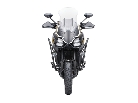 Мотоцикл ZONTES ZT703-F Tour 21/18 2025 – универсальный турэндуро, который подойдёт как для городских поездок, так и динамичных прохватов по грунту благодаря производительной подвеске. Узнайте, что такое настоящее наслаждение путешествием!Силовая установка представлена 3-цилиндровым 4-тактным двигателем объёмом 699 см³ с 4 клапанами на каждом цилиндре и 2 верхними распредвалами. Двигатель способен развивать мощность до 97,2 л.с. при 10 000 об/мин и высокий крутящий момент 76 Н·м при 7500 об/мин, что позволяет развивать большую скорость и с лёгкостью преодолевать трассы со сложным рельефом. Соотношение диаметра цилиндра и хода поршня 70х60,6 мм. Степень сжатия 13:1. Может работать в 2 режимах: ECO и SPORT. Запуск двигателя осуществляется с помощью бесключевого доступа. Установлена алюминиевая защита.Жидкостная система охлаждения эффективно поддерживает оптимальную температуру двигателя. На мотоцикл установлена 6-ступенчатая коробка передач, оснащённая квик-шифтером для переключения передач без использования рычага сцепления.В конструкции мотоцикла используется пространственная алюминиевая рама. Спереди и по бокам картера установлена металлическая защита двигателя. Выхлопная система оснащена стильным глушителем. Ёмкость топливного бака 22 литра.На мотоцикл установлены спицованные бескамерные колёса диаметром 21 дюйм спереди и 18 дюймов сзади. Подвеска изготовлена итальянским производителем MARZOCCHI. Спереди используется телескопическая вилка перевёрнутого типа с ходом 180 мм. Сзади установлен моноамортизатор с ходом 180 мм. Оба компонента регулируются.Дисковые гидравлические тормоза произведены компанией J.JUAN, входящей в холдинг BREMBO. Спереди используется двойной диск 310 мм с 4-поршневыми суппортами, а на заднем колесе расположен диск 260 мм с однопоршневым суппортом. Мотоцикл также оснащён 2-канальной ABS-системой с возможностью отключения, а также настраиваемой противобуксовочной системой.На мотоцикле используется яркая LED-оптика с дополнительным светом и многофункциональная приборная TFT-панель, положение которой можно регулировать. Рычаги тормоза и сцепления можно регулировать. Руль оснащён функцией подогрева и защитой рук. Спереди и сзади установлены видеорегистраторы. Мотоцикл оснащён датчиками давления в шинах. Ветровое стекло имеет электронную регулировку и настраивается через кнопки на руле. Имеется 2 USB-порта. Вещи можно перевозить в багажном отсеке, или присоединить кофры для перевозки: имеется площадка для установки центрального кофра и крепления для боковых кофров. Мотоцикл поставляется с центральной подножкой в комплекте.Габариты мотоцикла 2355x940x1395 мм. Колёсная база 1550 мм. Высота по седлу 830 мм. Вес 228 кг.