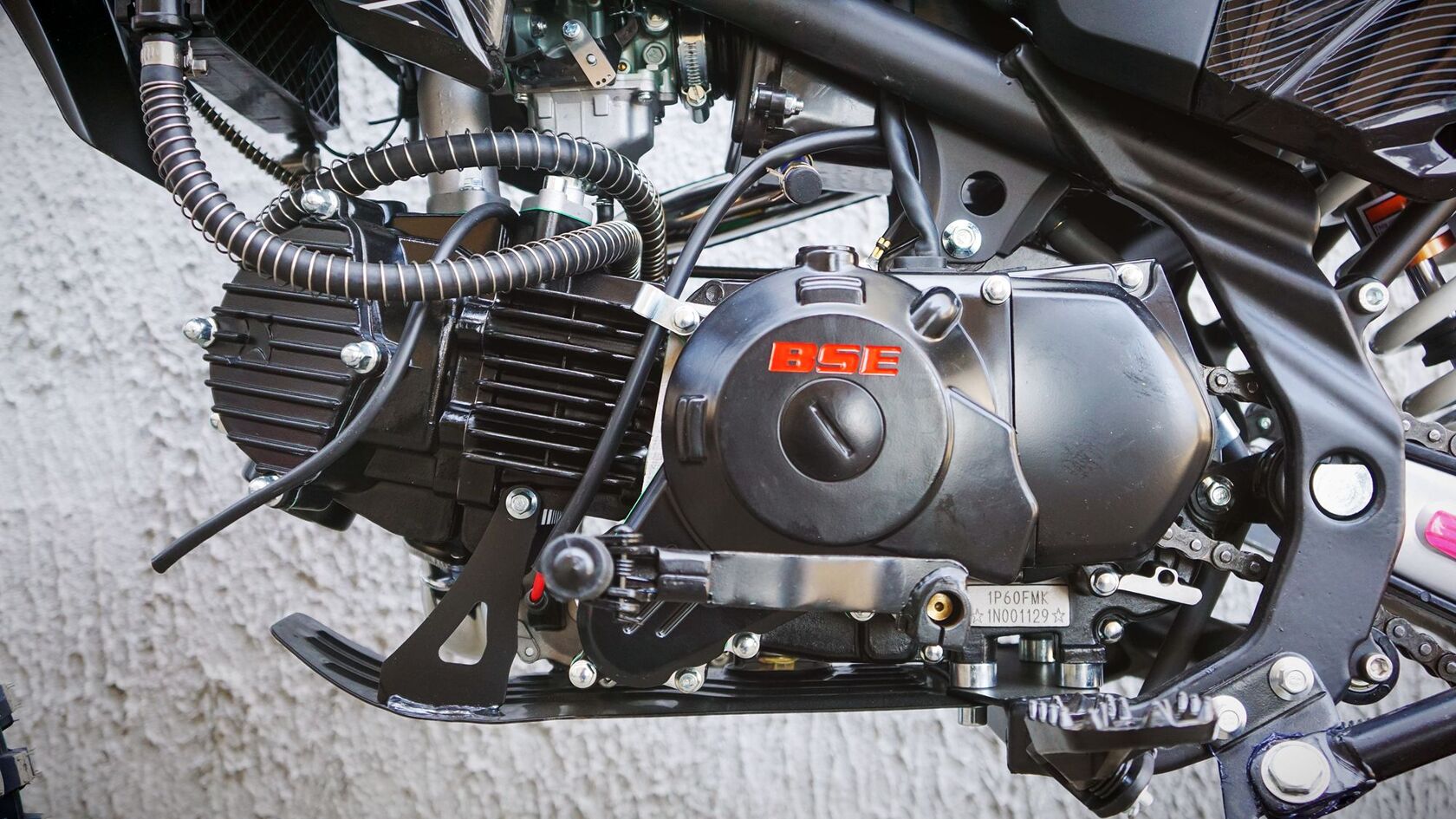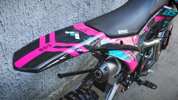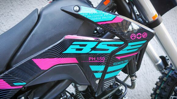 BSE PH150 – король питбайков в линейке BSE.PH150 на колесах 17/14 оснащен самым мощным двигателем среди питбайков BSE и самой богатой комплектацией.Основа PH150 - рама из хромомолибденовой стали повышенной жесткости с литыми усилителями — фирменный знак качества завода BOSUER! Силовая установка питбайка — надежный и тяговитый 4-тактным двигателем YX объёмом 150 см3 с воздушным охлаждением. Максимальная мощность – внушительные 15 л.с. Питает мотор карбюратор MIKUNI VM26. Питбайк оснащен 4-ступенчатой механической трансмиссией. Запуск мотора осуществляется при помощи электростартера или кик-стартера. Подвески с большими ходами: передняя — телескопическая вилка перевёрнуто типа, задняя — моноамортизатор.LED фара головного света, "злая" резина, мощная тормозная система HSK Racing, японские колесные подшипники NTN, защита мотора, руль ProTaper - питбайк полностью укомплектован всем необходимым для покатушек и гонок.PH150 – профессиональный выбор самого продвинутого "питбайкера".