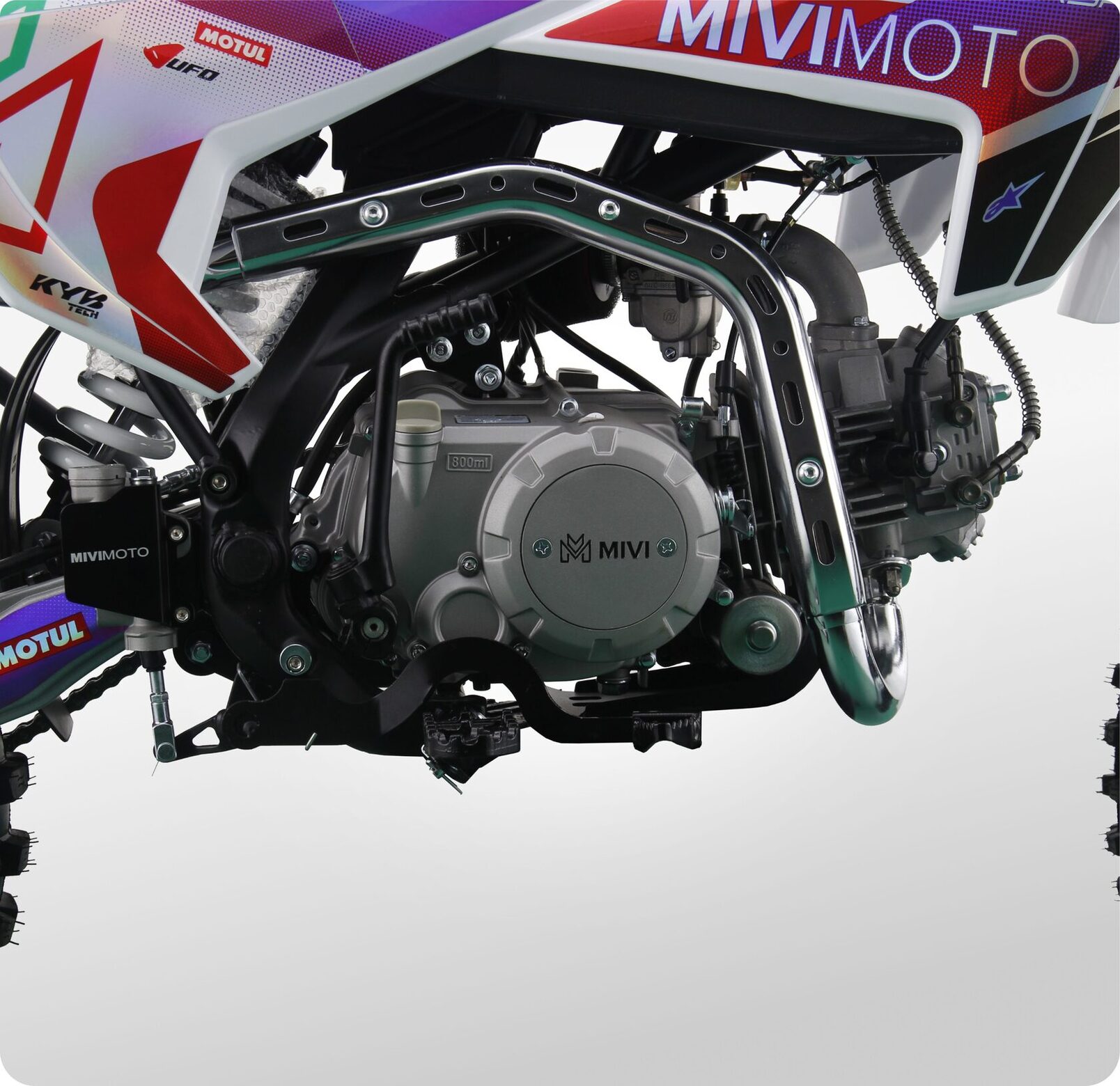 MIVIMOTO CORSA 150 — настоящий байк для тех, кто не боится скорости и любит преодолевать препятствия. Мощный 150-кубовый двигатель выдает 12 лошадиных сил, обеспечивая динамичный разгон и плавный ход как по дорогам, так и по бездорожью.- Четырехтактный двигатель сочетает в себе мощность и надежность, а также дополнительно оснащен масляным радиатором для более эффективного охлаждения при больших нагрузках. Карбюратор Nibbi Racing PE22 обеспечивает стабильную подачу топлива, а электростартер делает запуск легким и удобным.- Прочная стальная рама. Конструкция выдерживает серьезные нагрузки, сохраняя устойчивость как при активной езде, так и в экстремальных условиях.- Спереди питбайк оснащен перевернутой телескопической вилкой KYB tech, сзади — моноамортизатором с регулируемой жесткостью. Конфигурация обеспечивает плавный ход, хорошую отработку неровностей и комфорт при прыжках и резких маневрах.- Тормоза. Фирменные гидравлические дисковые тормоза HSK на обоих колесах обеспечивают точное и быстрое торможение в экстремальных условиях.- Питбайк оснащен светодиодной фарой, что позволит использовать его в темное время суток, и сиденьем из противоскользящего материала.