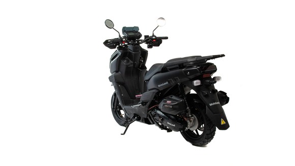 Скутер Motoland Tank - отличный вариант для загородных поездок и рыбалки: имеет множество дополнительных защит и закрытий, колеса 12" с резиной для поездки по грунтовой дороге и асфальту.Брутальный внешний вид и черный цвет делает его не похожим на другие скутера. Дополнительные ДХО, светодиодные поворотники и стоп-сигнал.На скутере установлен одноцилиндровый четырехтактный двигатель 157 QMJ мощностью 10 л/с и рабочим объемом 150 см3 с принудительным охлаждением, что позволяет ему не перегреваться даже в сильную жару. Система запуска кикстартер + электростартер. Трансмиссия - вариатор, не требующий манипуляциях с переключением скоростей. Это очень удобно при эксплуатации и не вызывает сложностей, просто сел, повернул ручку газа и поехал. Все тормоза - дисковые гидравлические.Подвеска - передняя вилка телескопическая и два задних амортизатора. Колесные диски литые алюминевые, на которые установлены качественные покрышки 120/70-12".Выдерживает нагрузку до 150 кг, что позволяет перевозить одного пассажира. Под сиденьем есть большое багажное отделение + площадка для крепления дополнительного кофра. Приборная панель — электронная, с очень крупными, легко читаемыми цифрами и часами; со всеми необходимыми указателями.Габариты: 1900 х 710 х 1170 мм. (без учета зеркал)